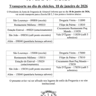 Aviso 01/2026 - Transporte no dias das eleições